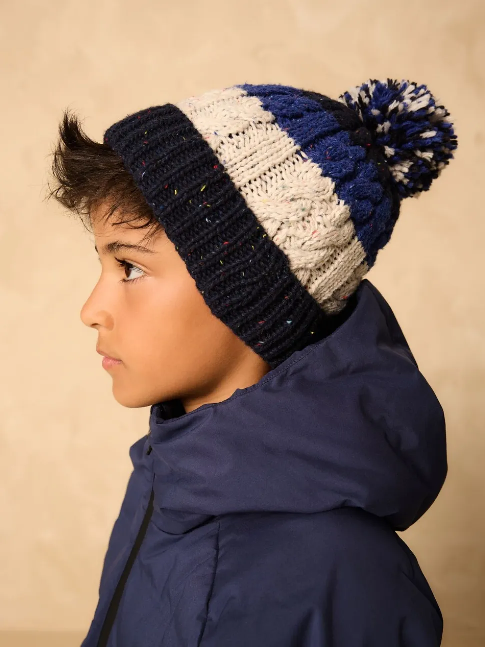 Lavable en machine. Coque 98% acrylique, 2% polyester recyclé. Doublure : 94% polyester recyclé, 6% élasthanne.