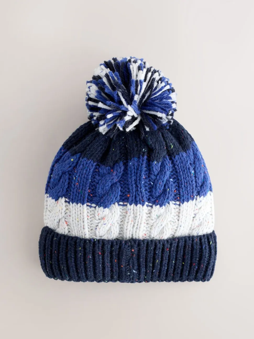 Bande bleue/blanche – Pom Bonnet Chapeaux (3mths-16yrs)