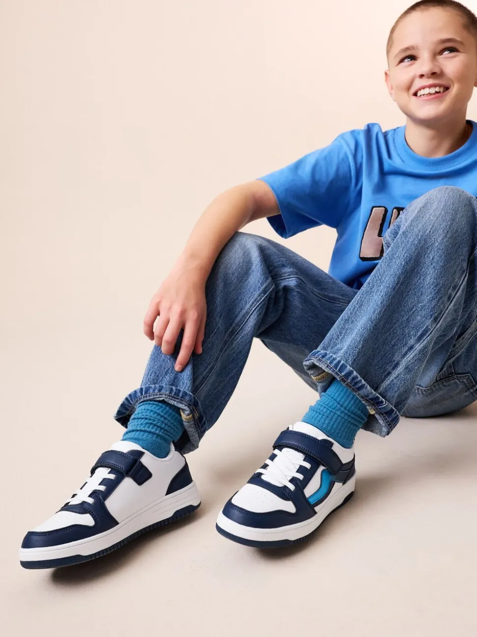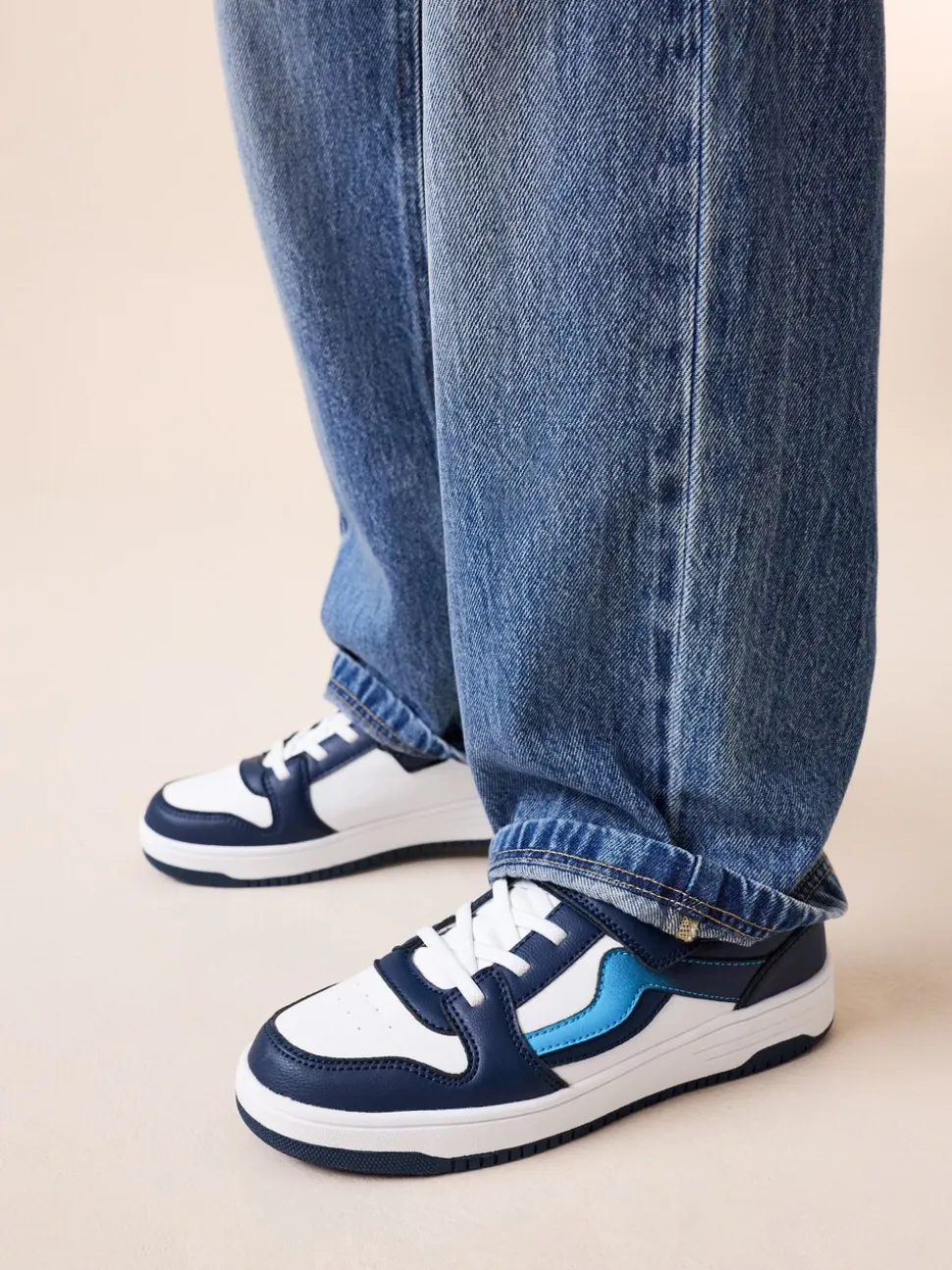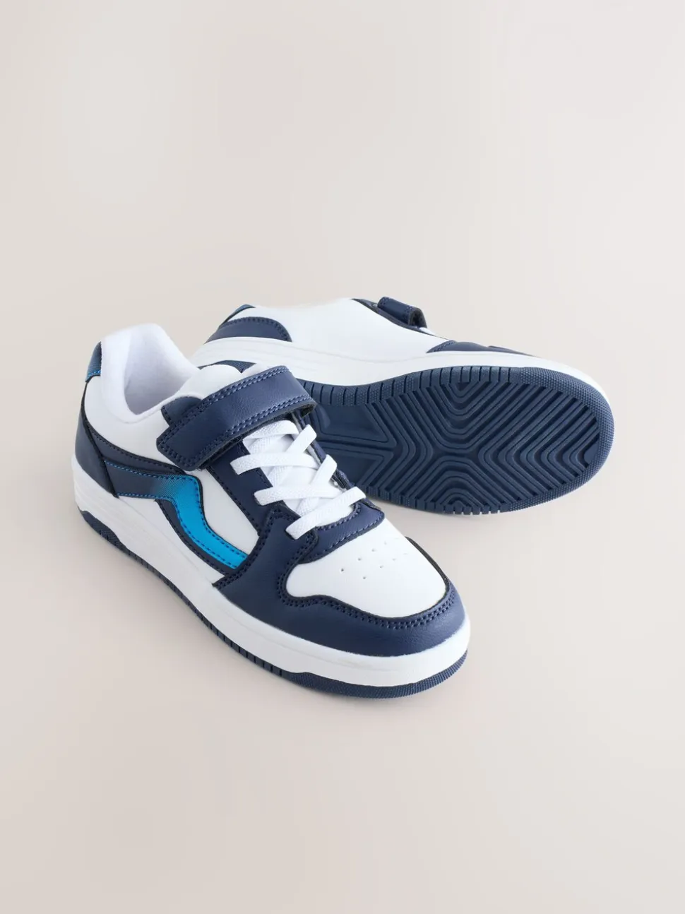 Blanc/Bleu – Baskets à lacets élastiques à fermeture tactile