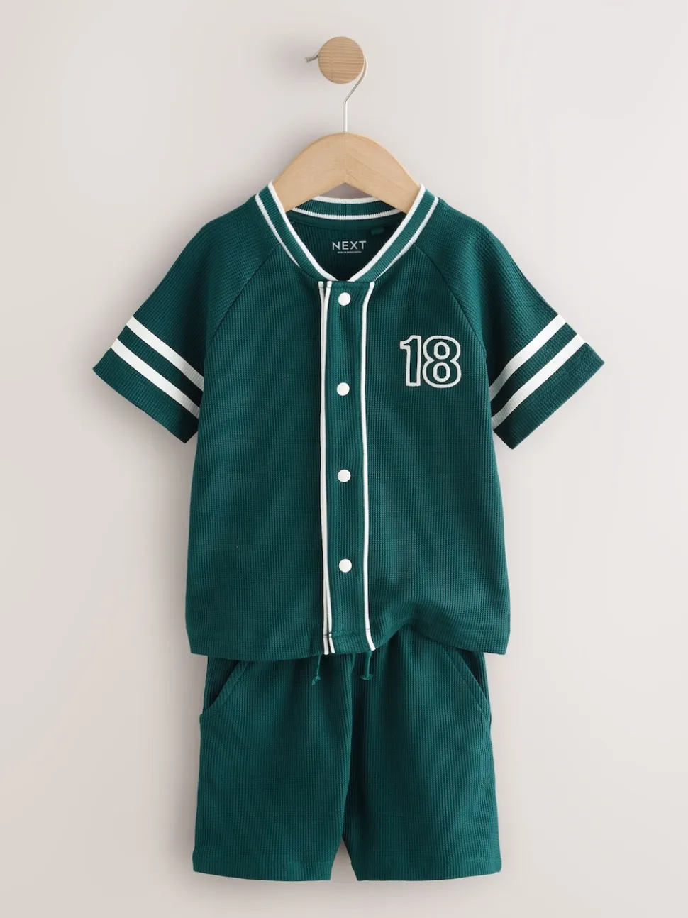 Lavable en machine. T-shirt et short 80% coton, 17% polyester recyclé, 3% élasthanne.