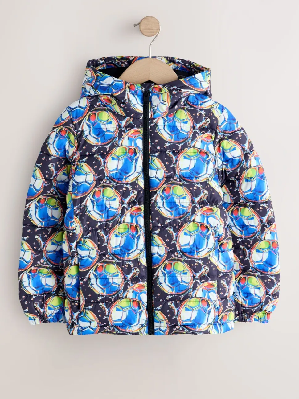 Bleu Football – Veste matelassée à capuche de poids moyen (3-17ans)