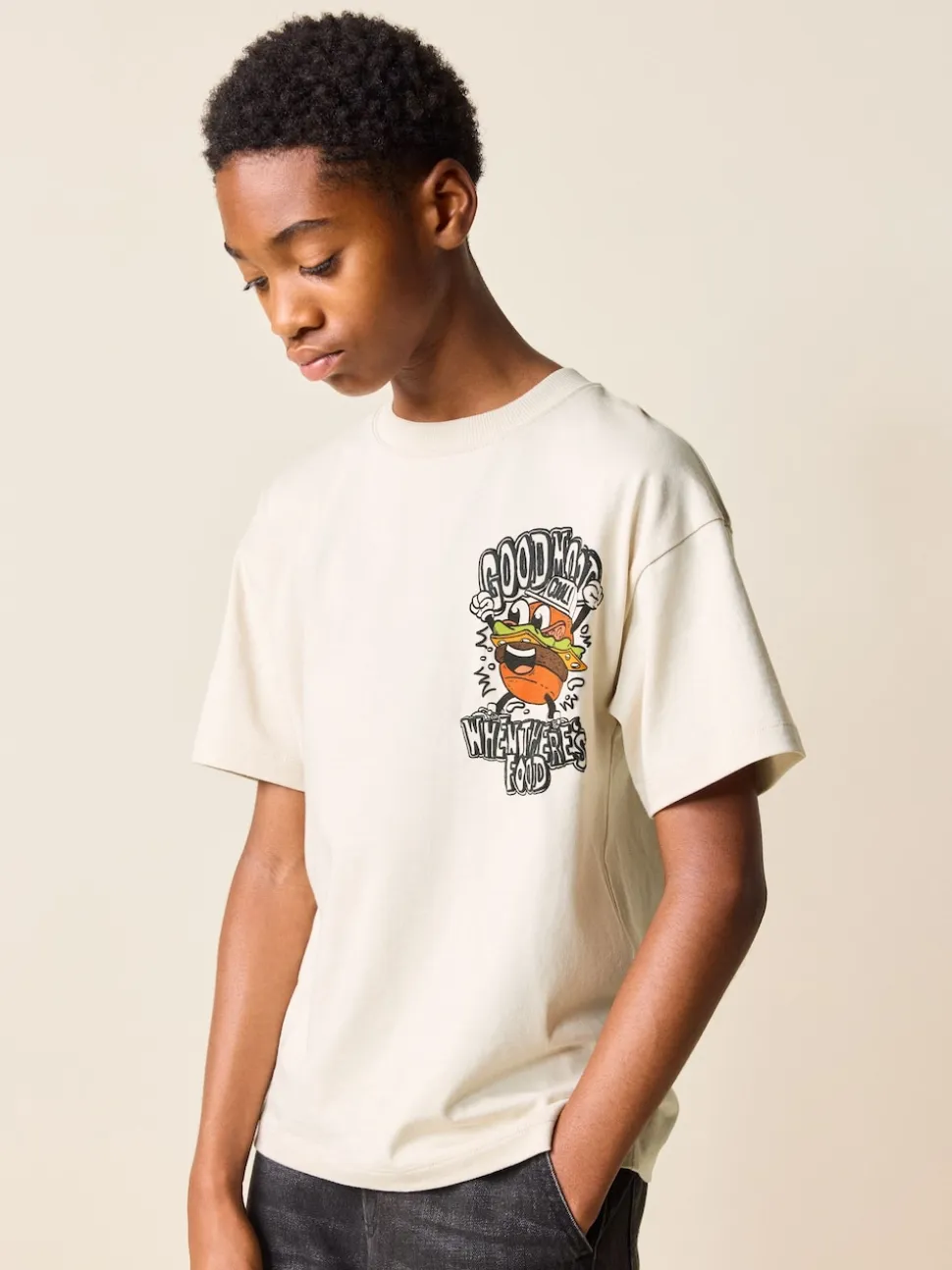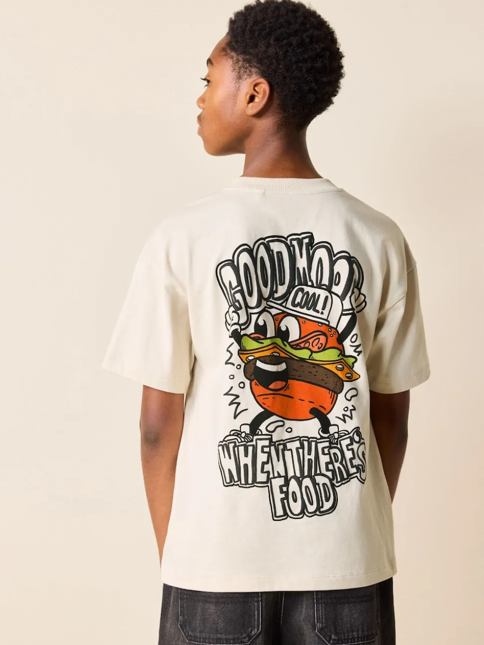Burger de personnage Beige Sable – T-shirt graphique Manches courtes Relaxed Fit (3-16yrs)