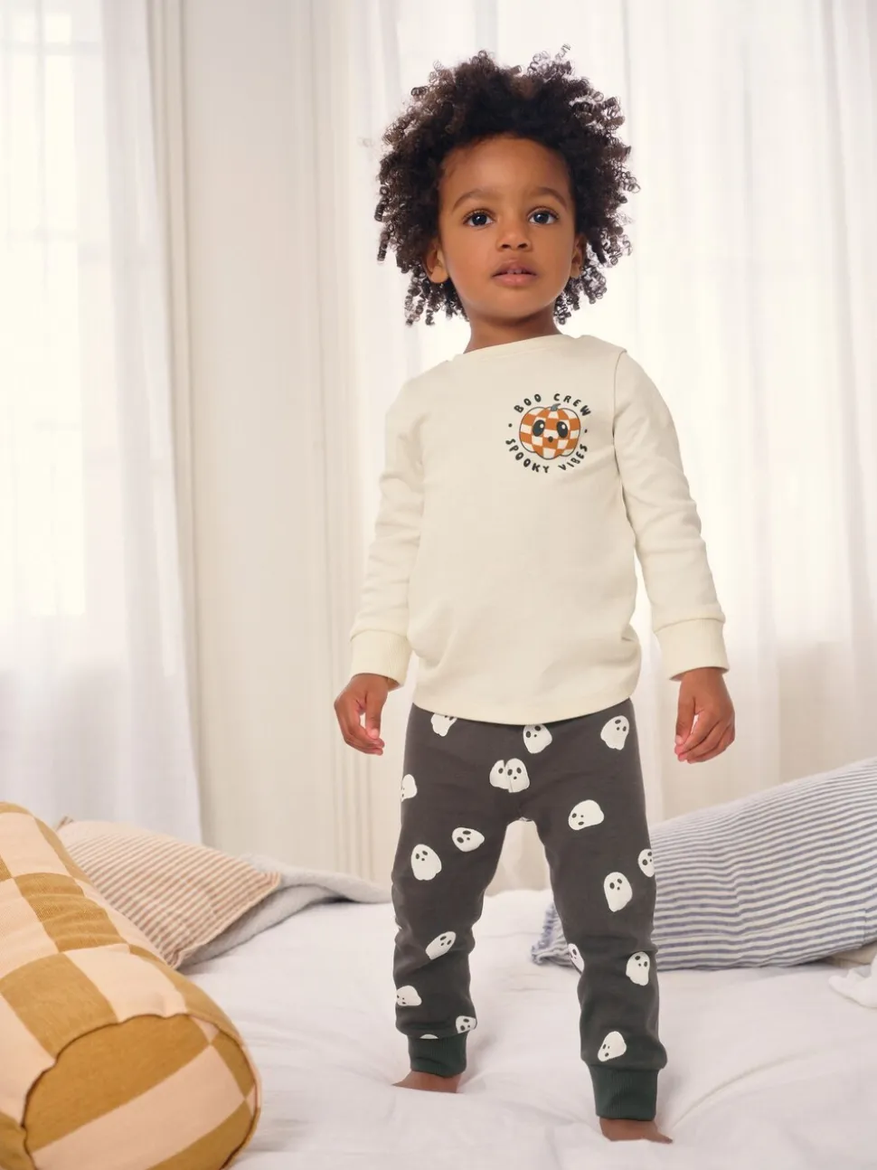Crème/Noir Halloween – Pyjama confortable confortable (9mois à10ans)