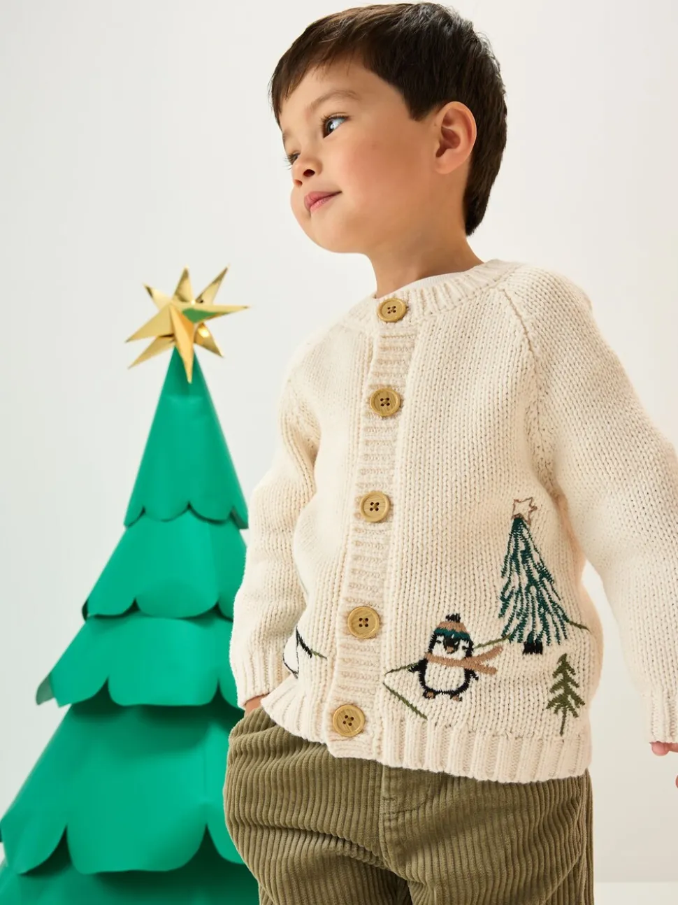 Crème Penguin – Cardigan de Noël à motif (3mois à7ans)
