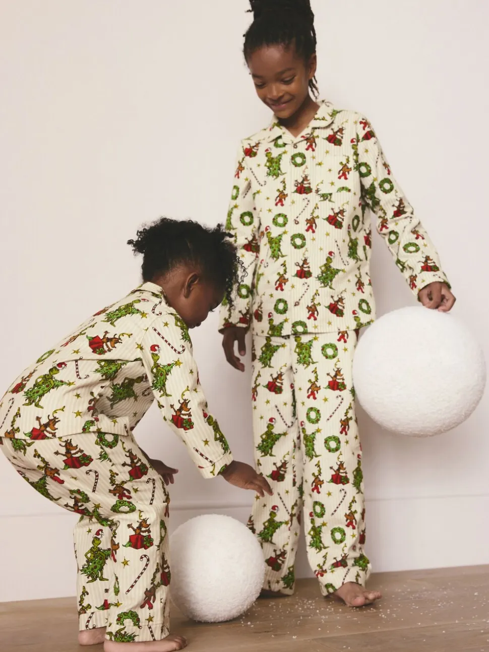 Crème – Pyjama de Noël boutonné Grinch assorti (9mois à16ans)