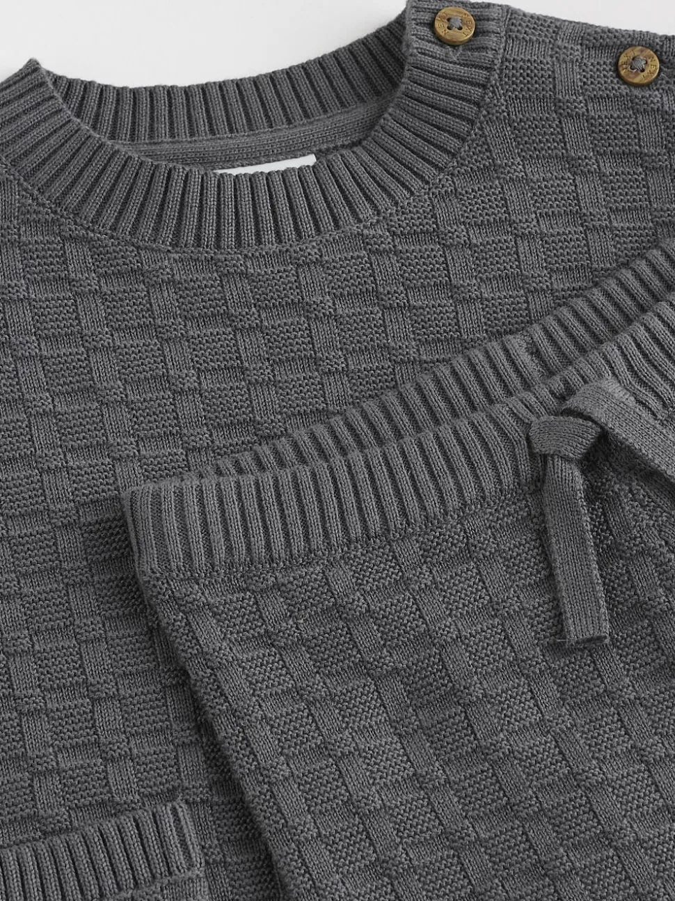 Gris de charbon de bois – Ensemble bébé pull et legging en tricot texturé 100 % coton (0mois -3ans)