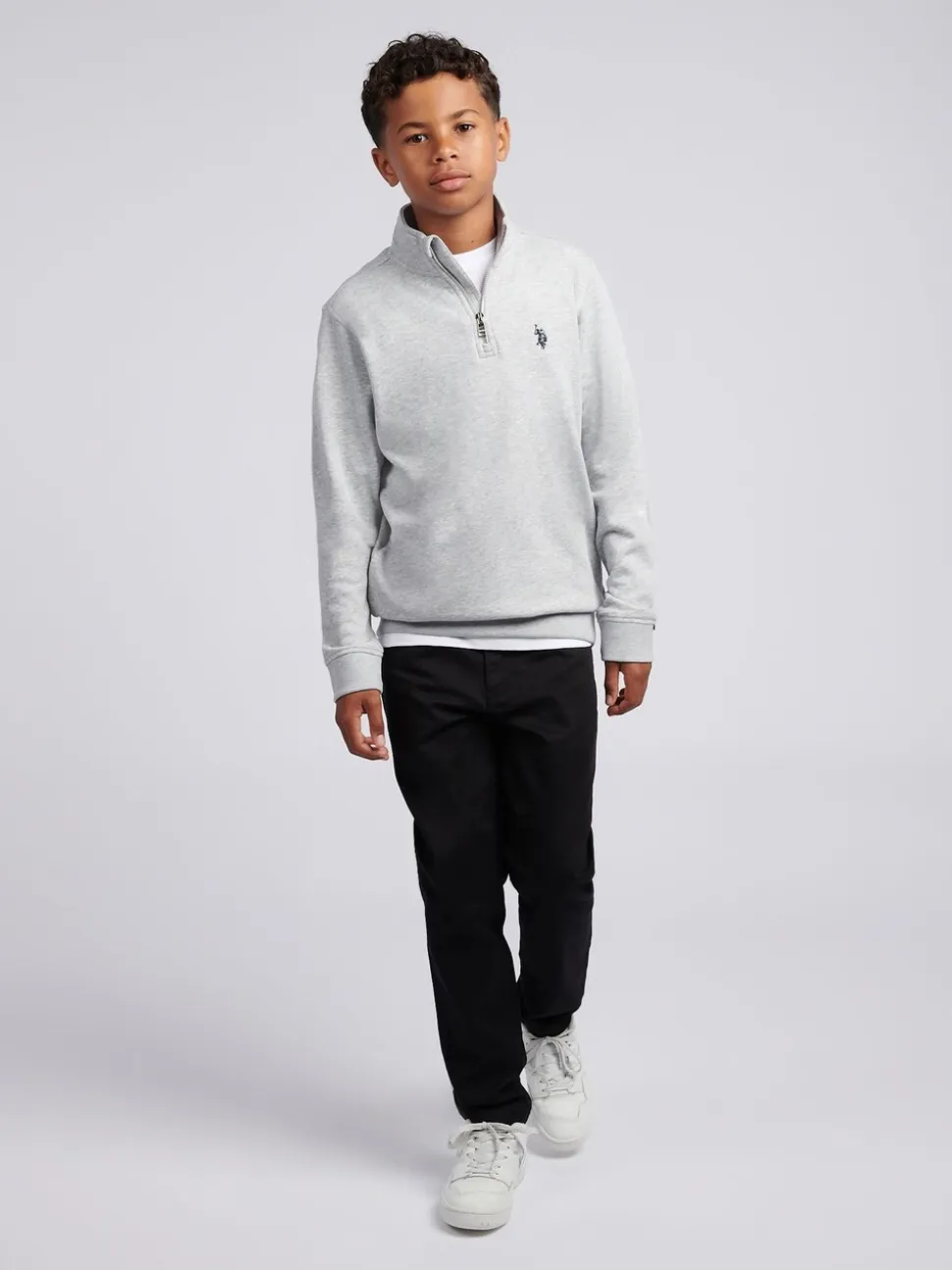 Gris – U.S. Polo Assn. Sweat-shirt Double Horsemen ¼ zippé