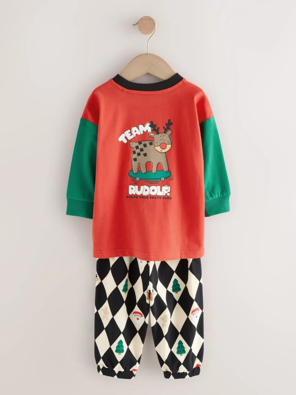 Harlequin rouge/vert – Pyjama de Noël simple (9mois-12ans)