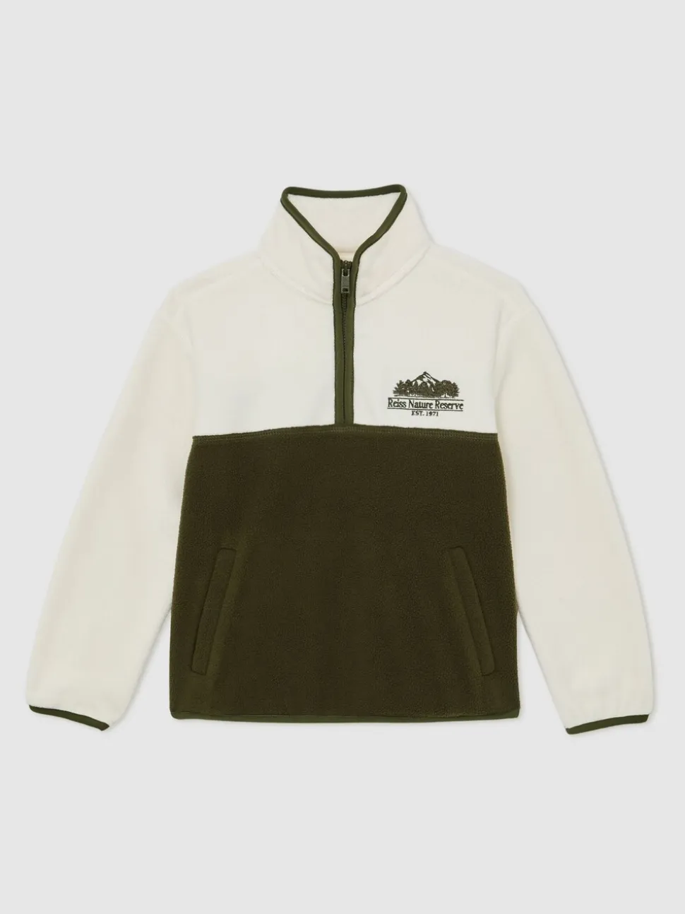Ivoire/kaki – Polaire zippée color-block Reiss Mahon Nature Reserve