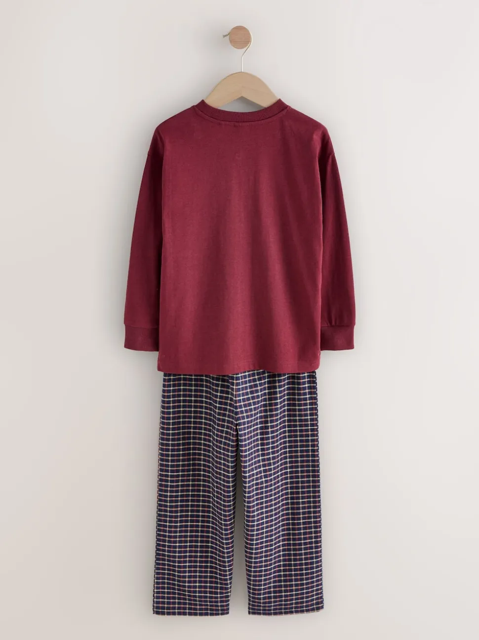 Marine/Bourgogne – Lot de 2 pyjamas en tissu à carreaux à manches longues (3-16ans)