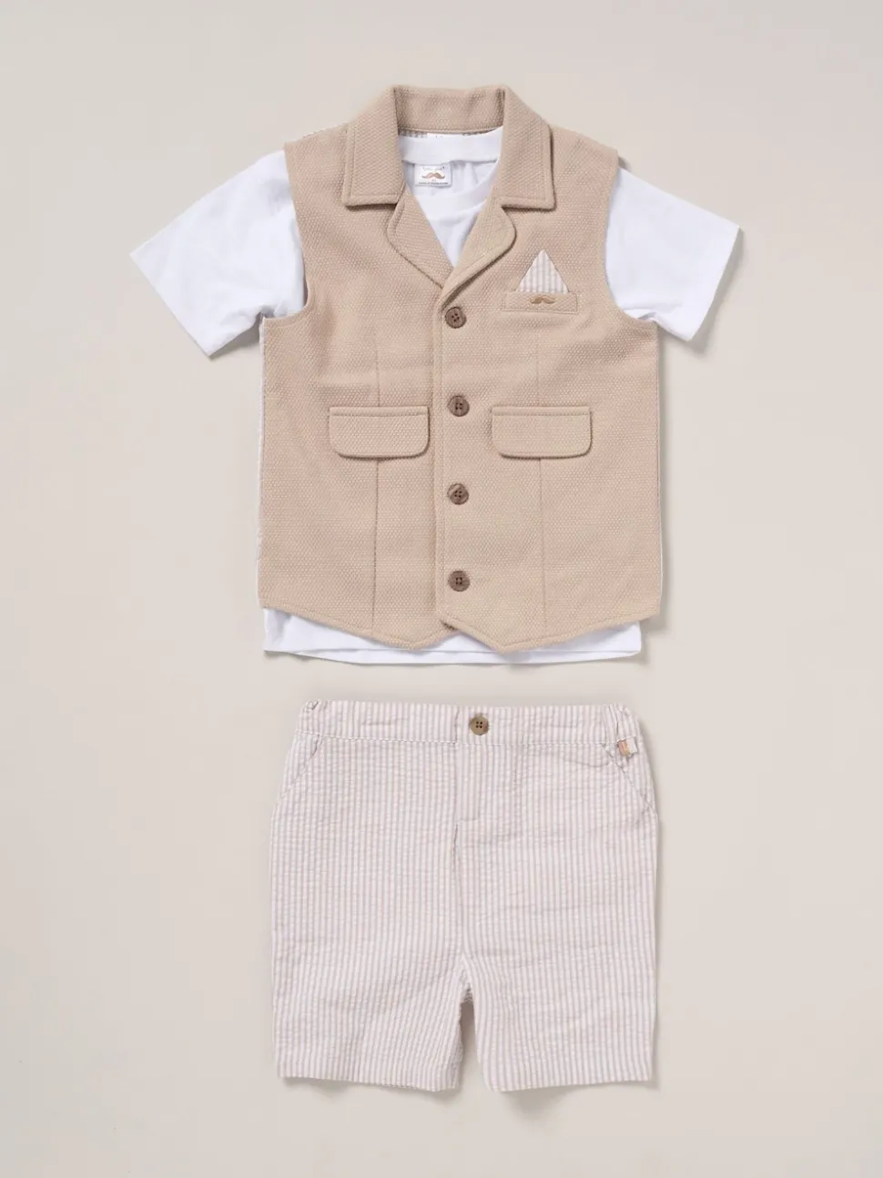 Marron – Little Gent Ensemble chemise, gilet et short 100% coton