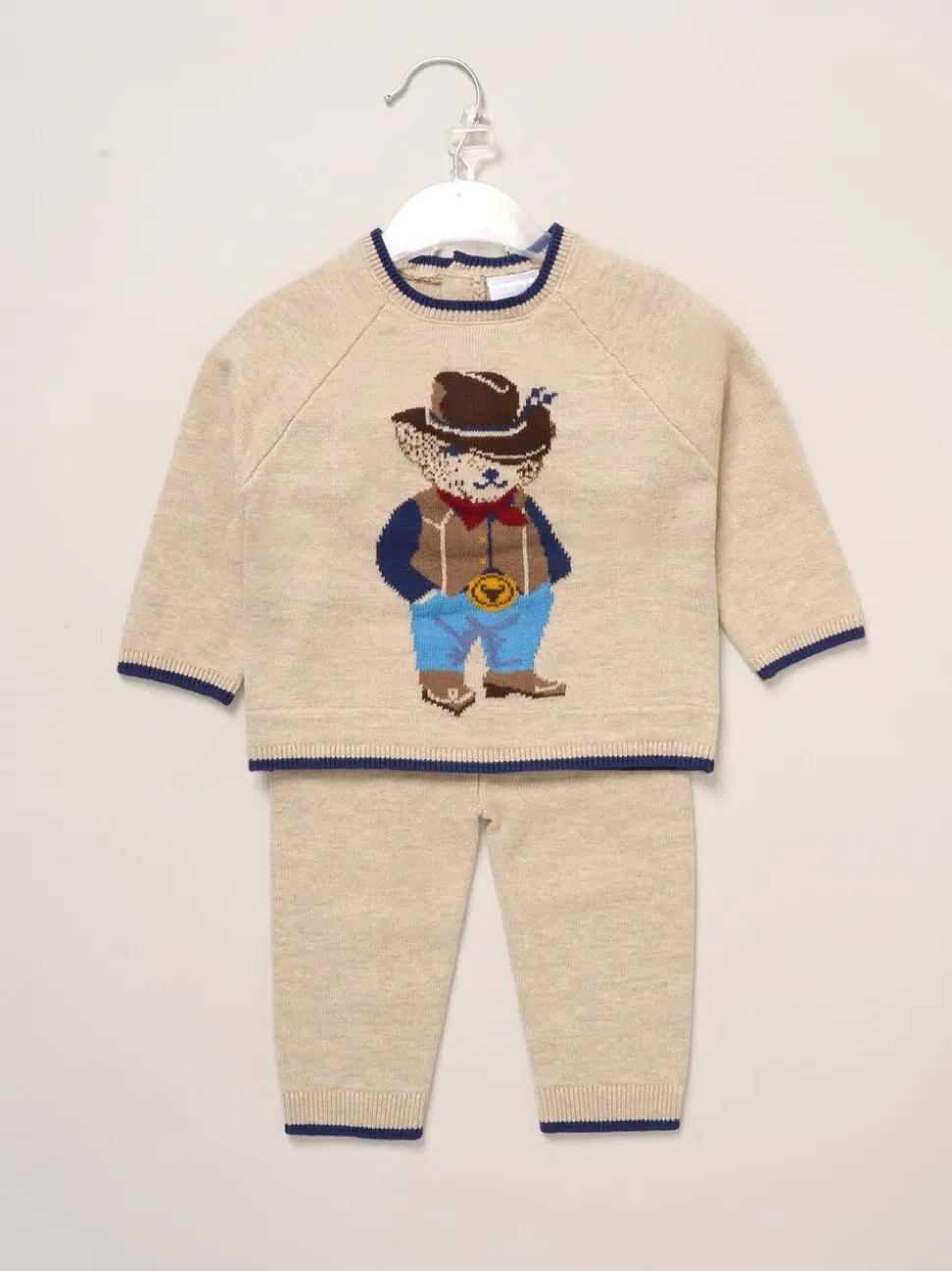 Marron – Rock-A-Bye Baby Boutique True Knit Cowboy Bear Pull et Pantalons Marron Ensemble