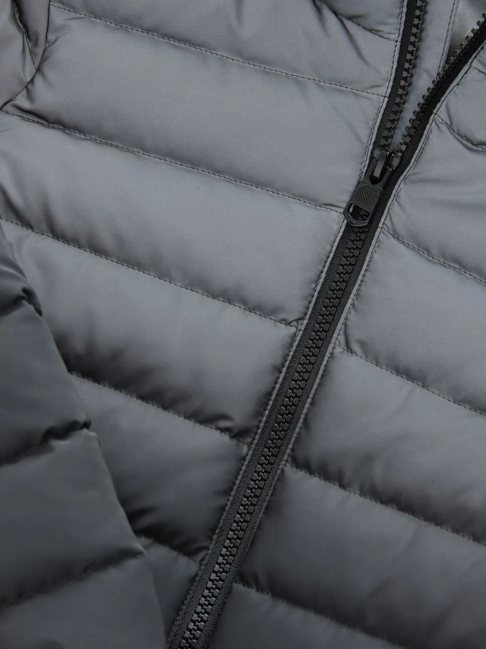 Noir/gris réfléchissant – Veste matelassée à capuche de poids moyen (3-17ans)