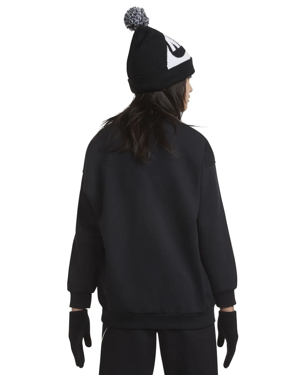 Noir – Nike ensemble bonnet et gants à pompons Swoosh