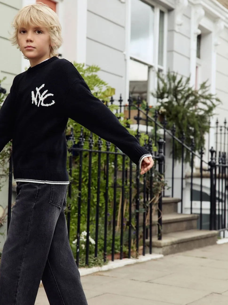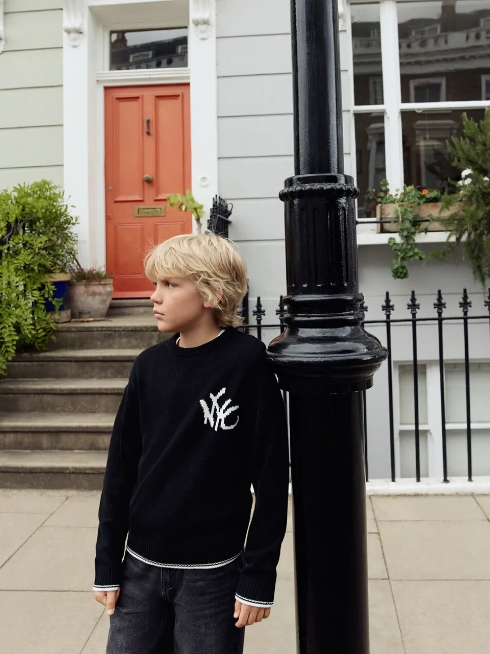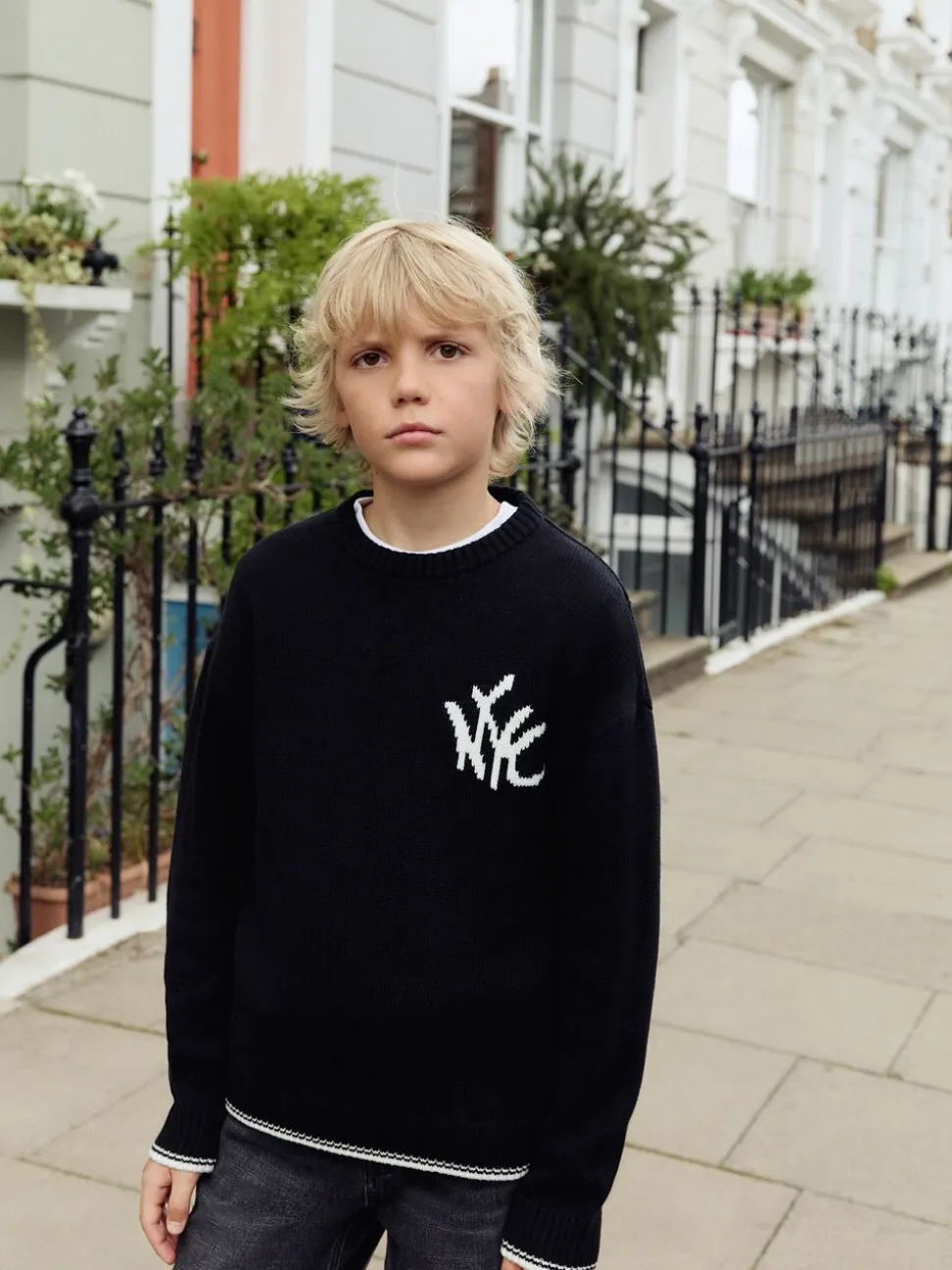 Noir NYC – Tireur de col rond tricoté (3-16yrs)