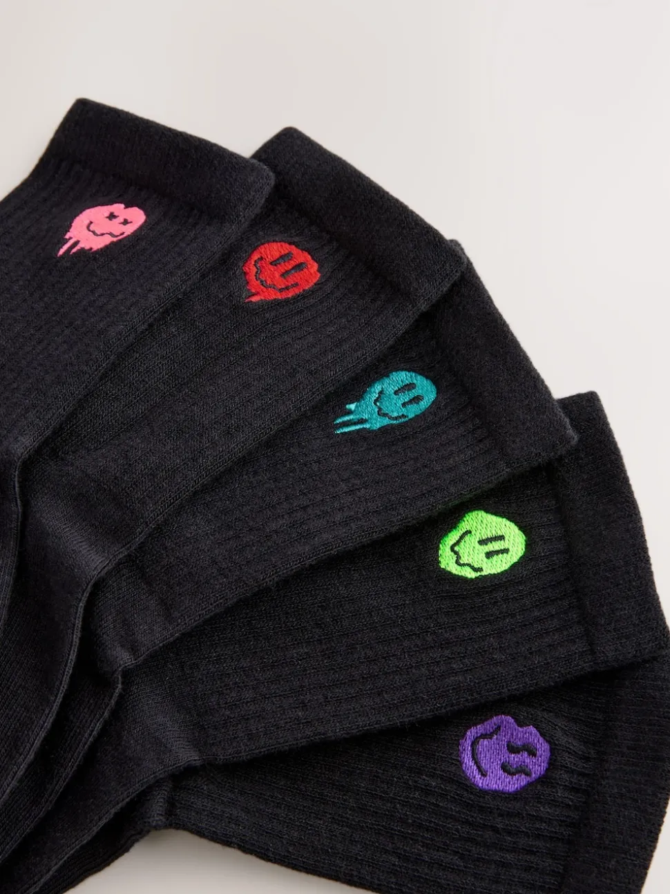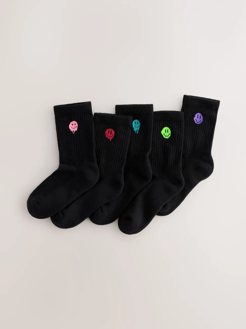 Noir Smiley – Lot de 5 paires de chaussettes côtelées Sport