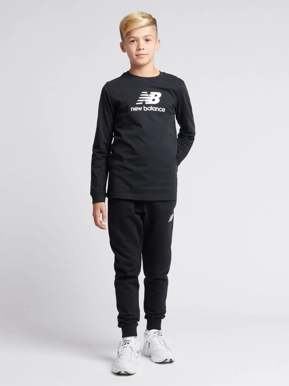 Noir – T-shirt New Balance New Balance manches longues en jersey à logo empilé pour enfant