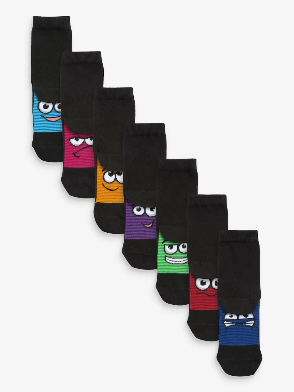 Noir/visages lumineux – Paquet de chaussettes en coton riche 7