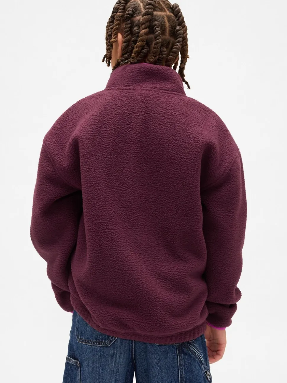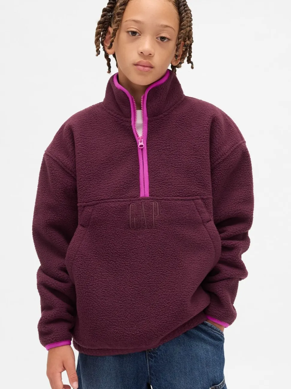 Rouge bordeaux – Sweat-shirt à enfiler semi-zippé avec Logo Gap Sherpa (4-13ans) (4-13ans)
