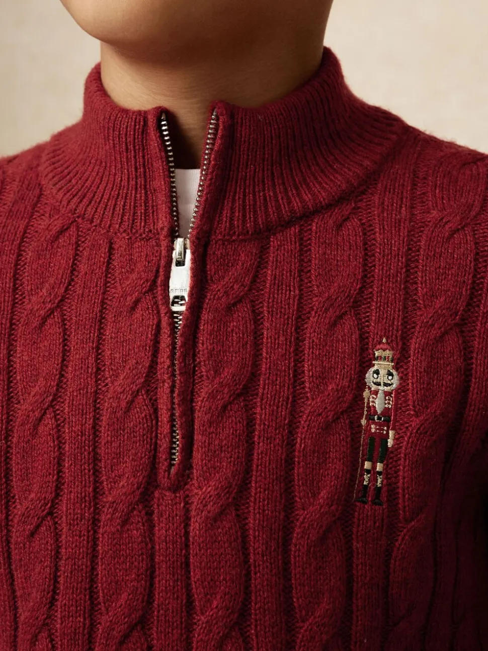 Rouge foncé – Pull Reiss Nollaig à col zippé casse-noisettes en laine mélangée
