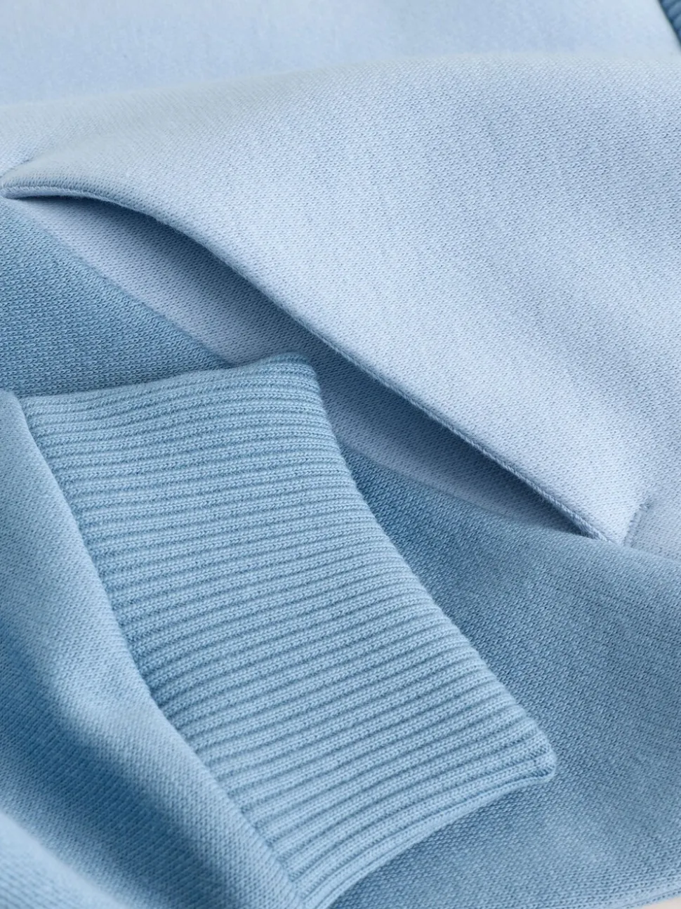 Matières principales : 82% coton, 18% polyester. Côtes 99% coton, 1% élasthanne. Bordure 100% coton.