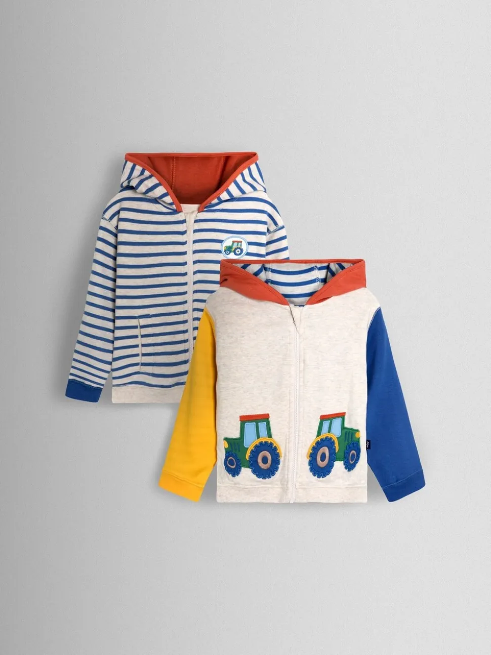 Tracteur naturel – Sweat à capuche réversible JoJo Maman Bébé color block