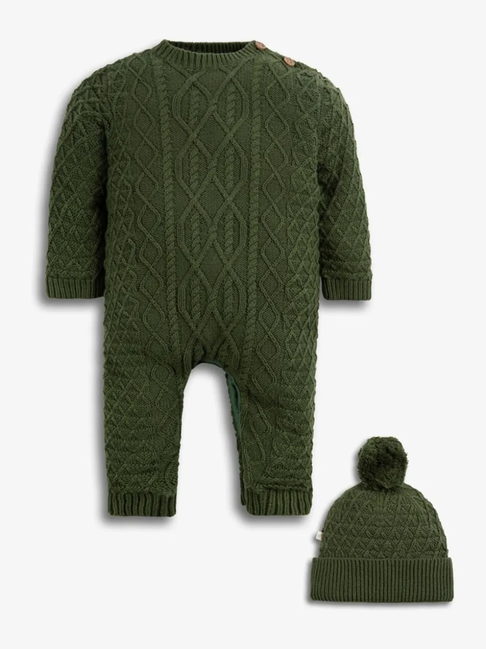 Vert – The Little Tailor Bébé 100% Cotton Cable Knit Romper And Chapeaux Gift Set