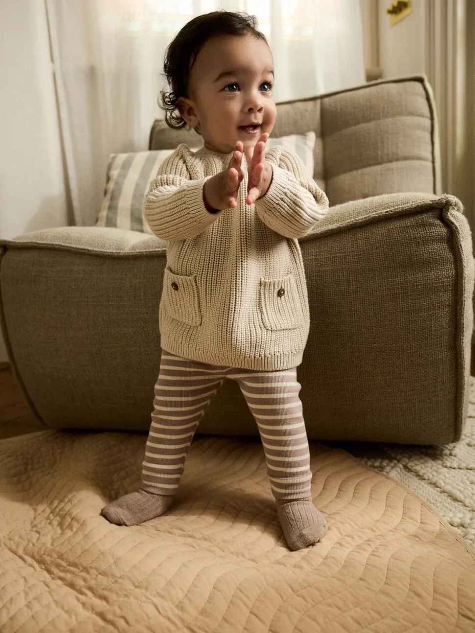 Bande neutre – Ensemble pull et legging en maille bébé (0 mois-2 ans)