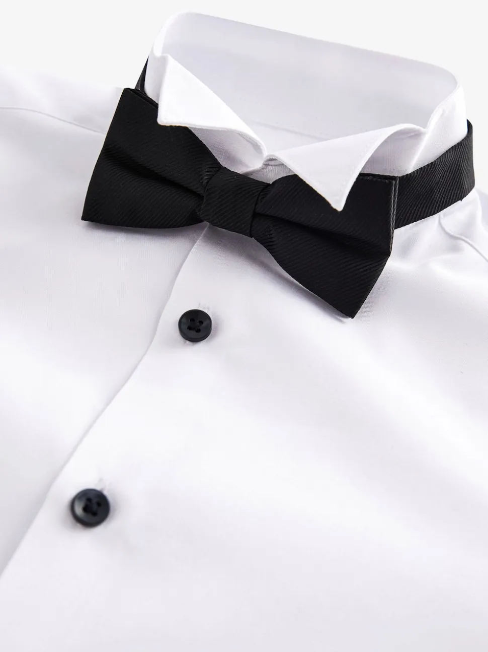 Chemise 65% Polyester recyclé, 35% Coton. Nœud papillon 100% de polyester recyclé.