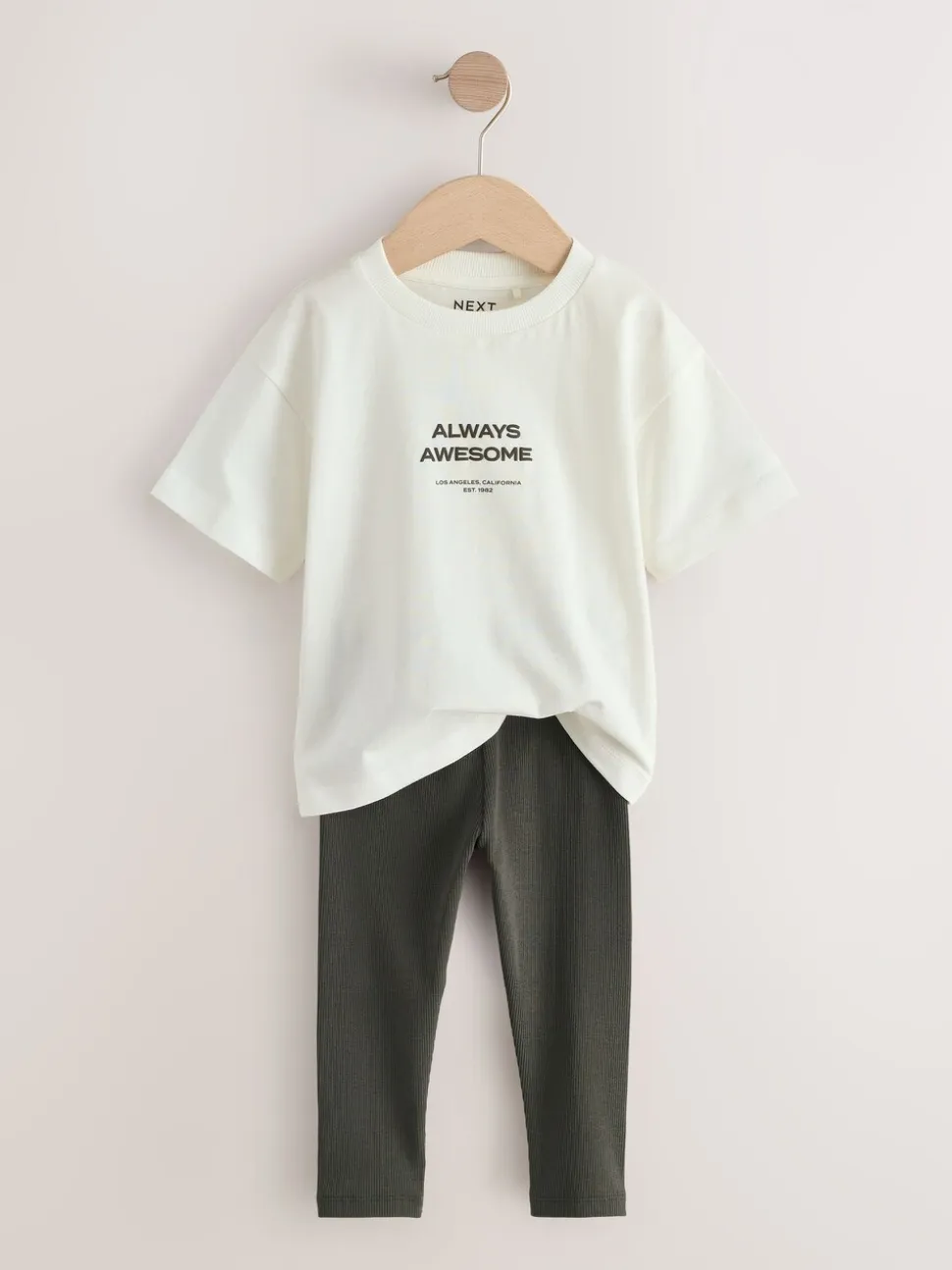 Blanc – Ensemble Manches courtes 100% coton – T-shirt et Leggings (3mths-7yrs)
