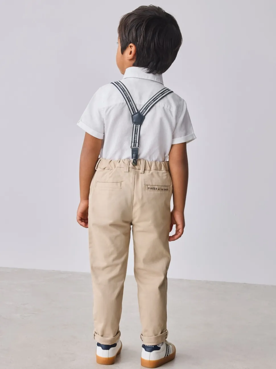 Blanc/ Pierre – Ensemble Baker by Ted Baker : Chemise, Pantalons et Bretelles