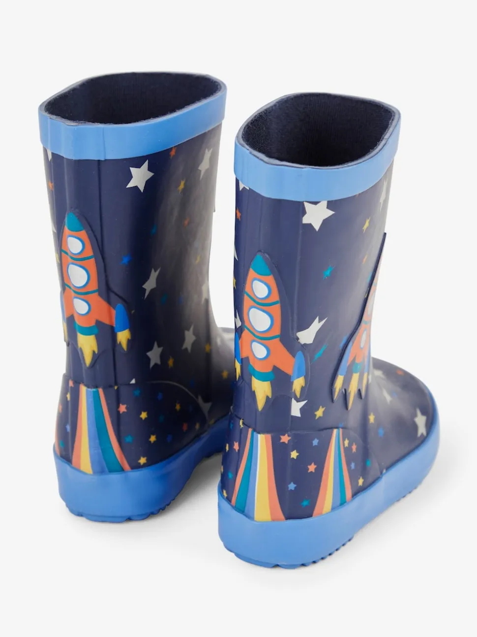 Bleu marine motif fusée – Bottes de pluie JoJo Maman Bébé unies