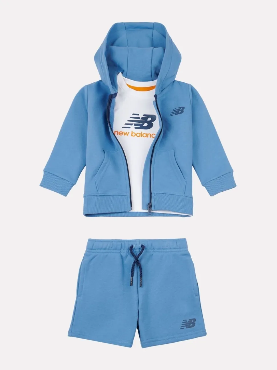 Bleu – New Balance Ensemble t-shirt et short zippé 100% coton pour enfant