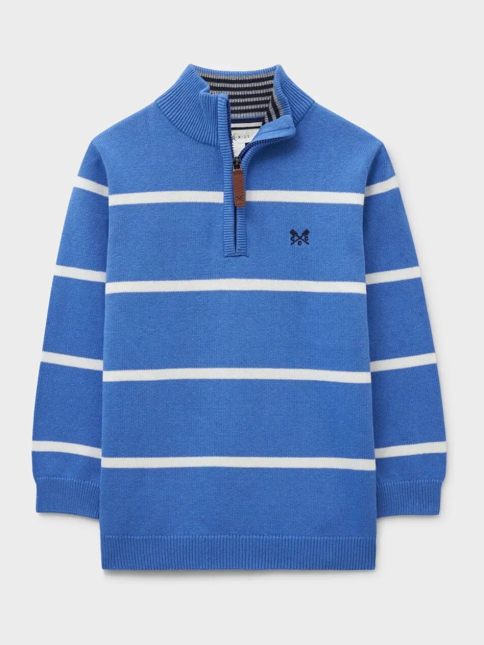 Bleu – Pull Crew Clothing classique en coton à demi-fermeture éclair