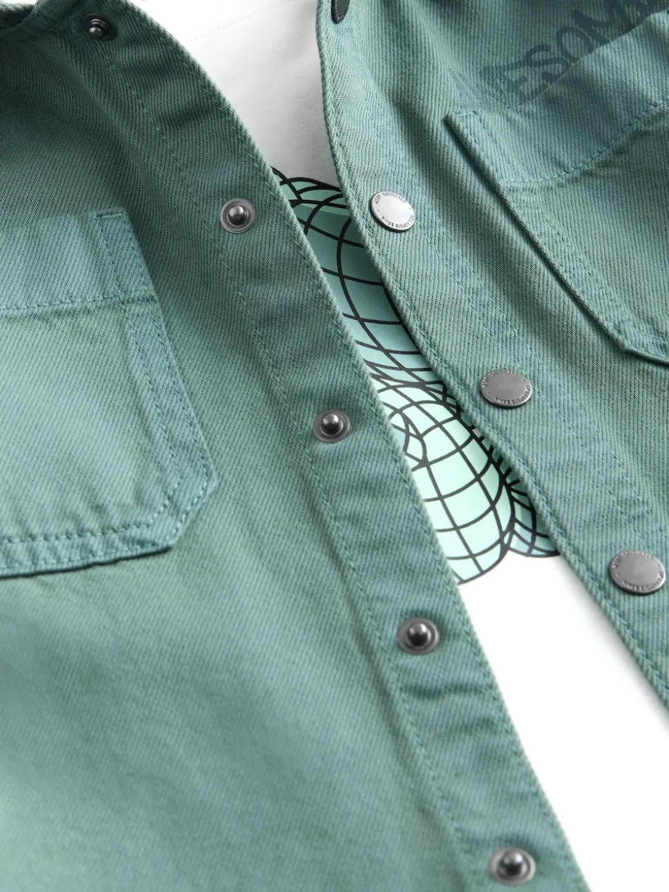 Bleu sarcelle foncé – Ensemble surchemise et t-shirt à capuche en sergé (3mois7ans)