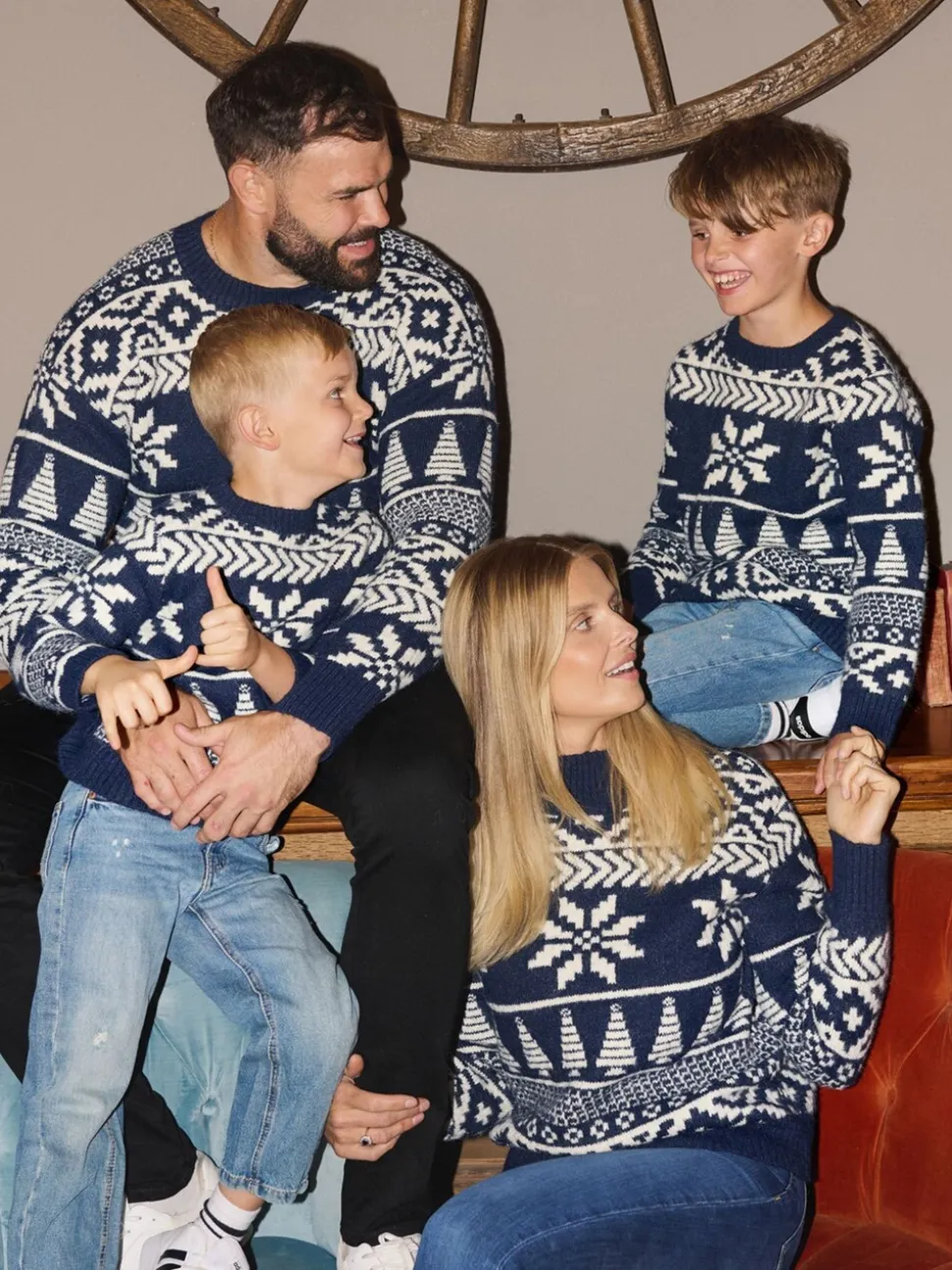 Bleu – The Little Tailor pull de Noël en jacquard bicolore épais pour enfant