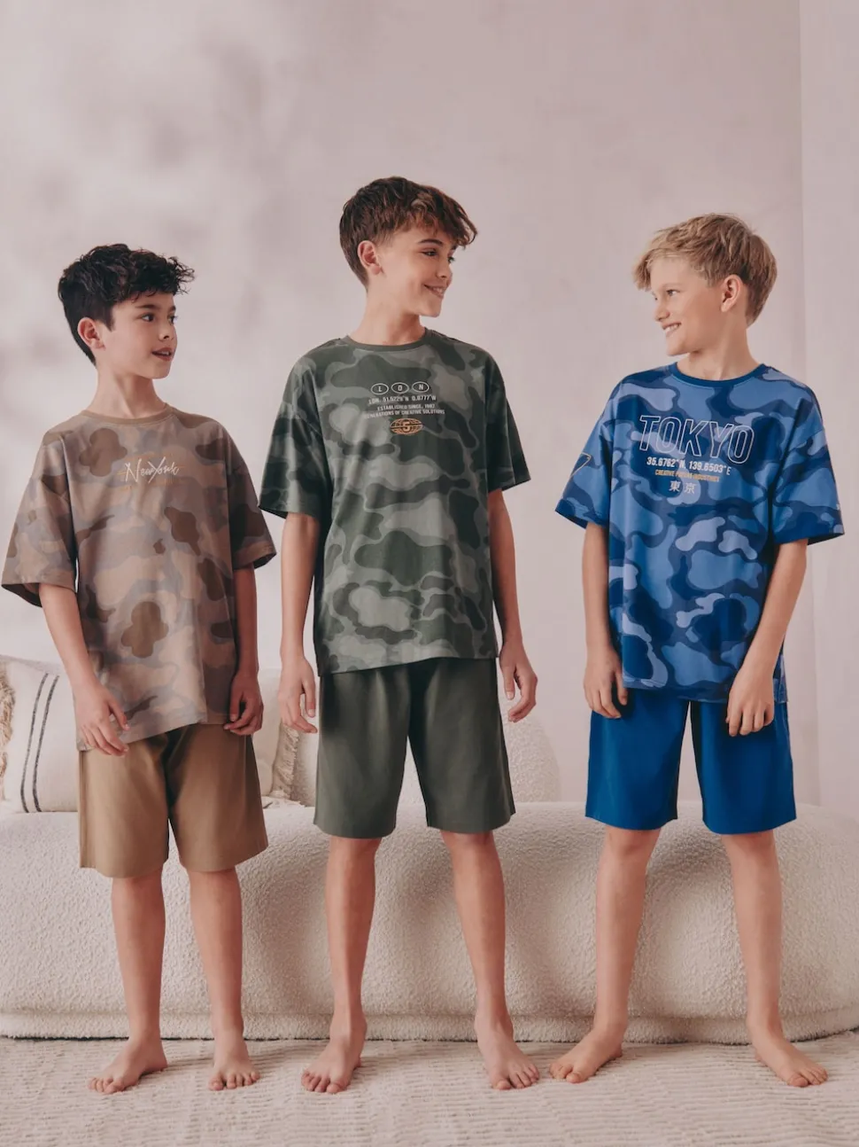 Bleu/Vert camouflage – Pyjama court 3 Pack (3-16ans)