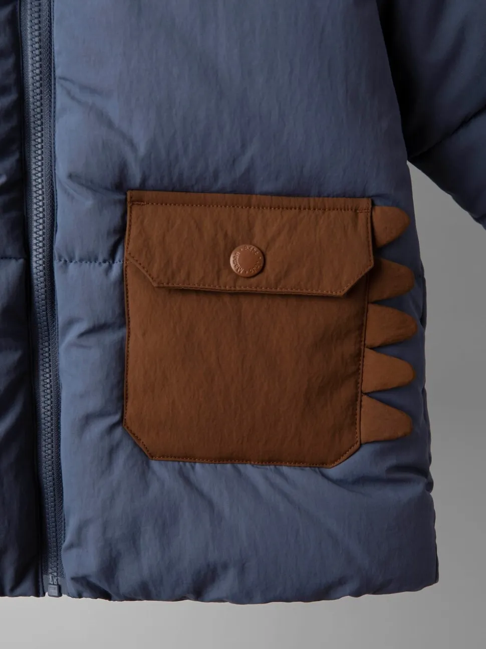 Dino bleu marine fantaisie – Doudoune JoJo Maman Bébé à capuche doublée Borg