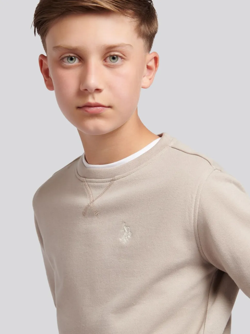 Écru – U.S. Polo Assn. Sweat-shirt à col rond Double Horsemen