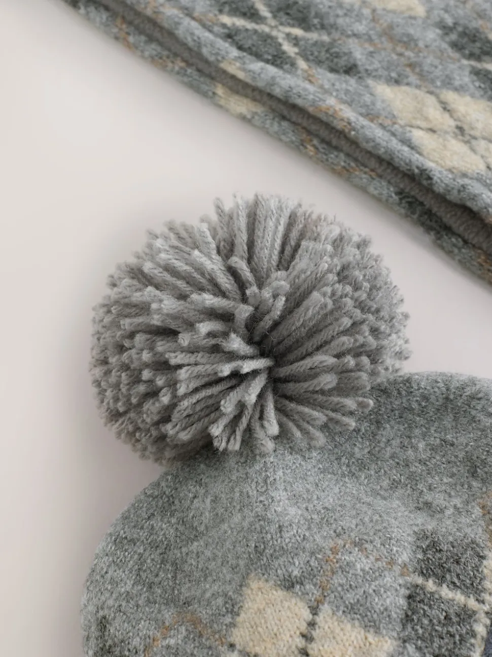 Gris/blanc à losanges – Ensemble chapeau, écharpe et gants 3 pièces (3-16ans)