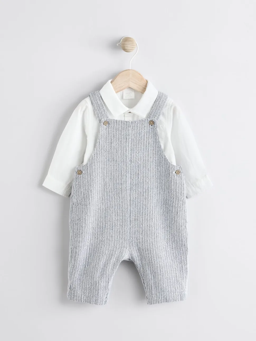 Gris/Blanc – Ensemble salopette et body bébé en coton tissé (0mois-3ans)