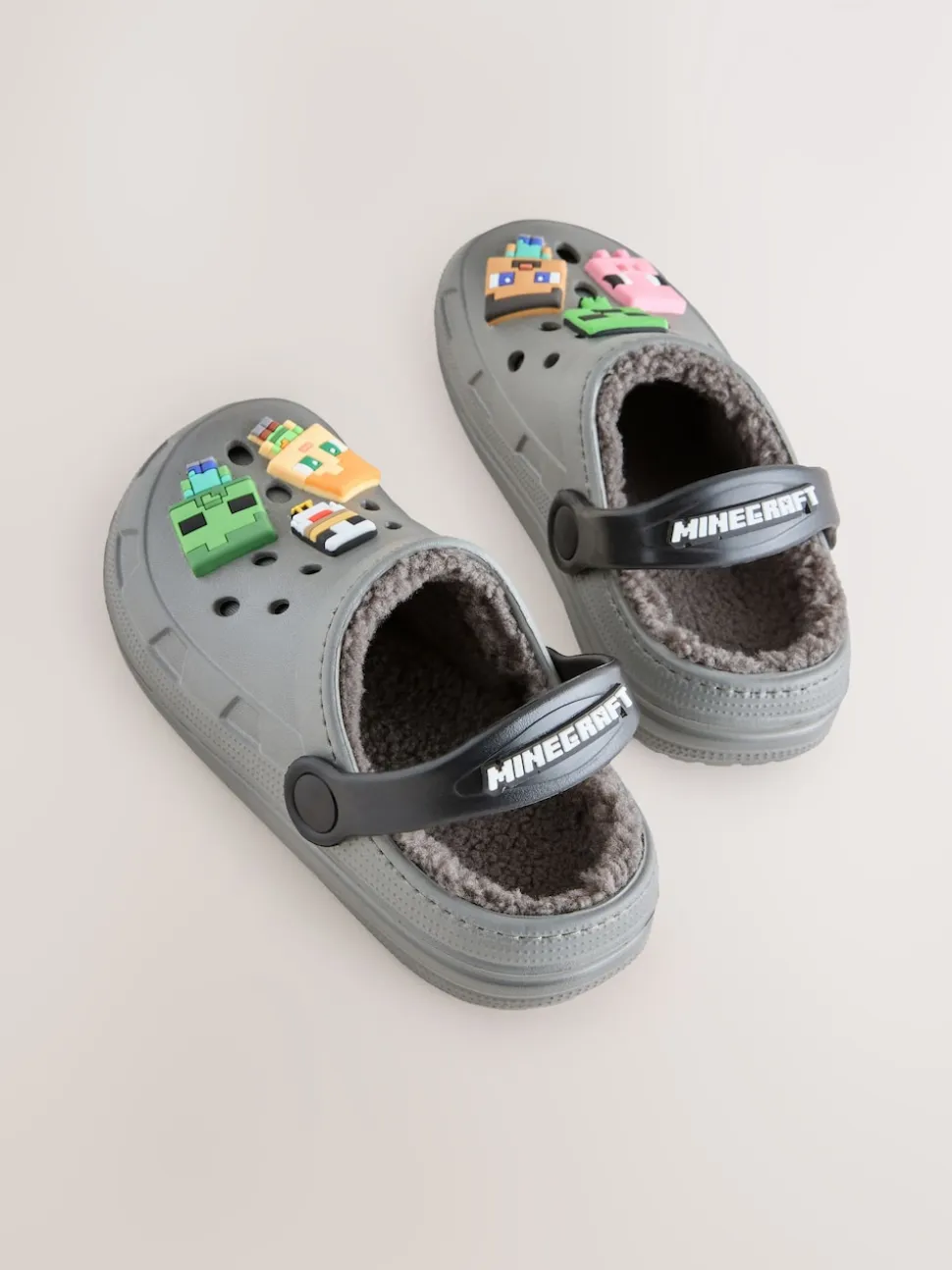 Gris – Sabots chaussons doublés chauds Minecraft