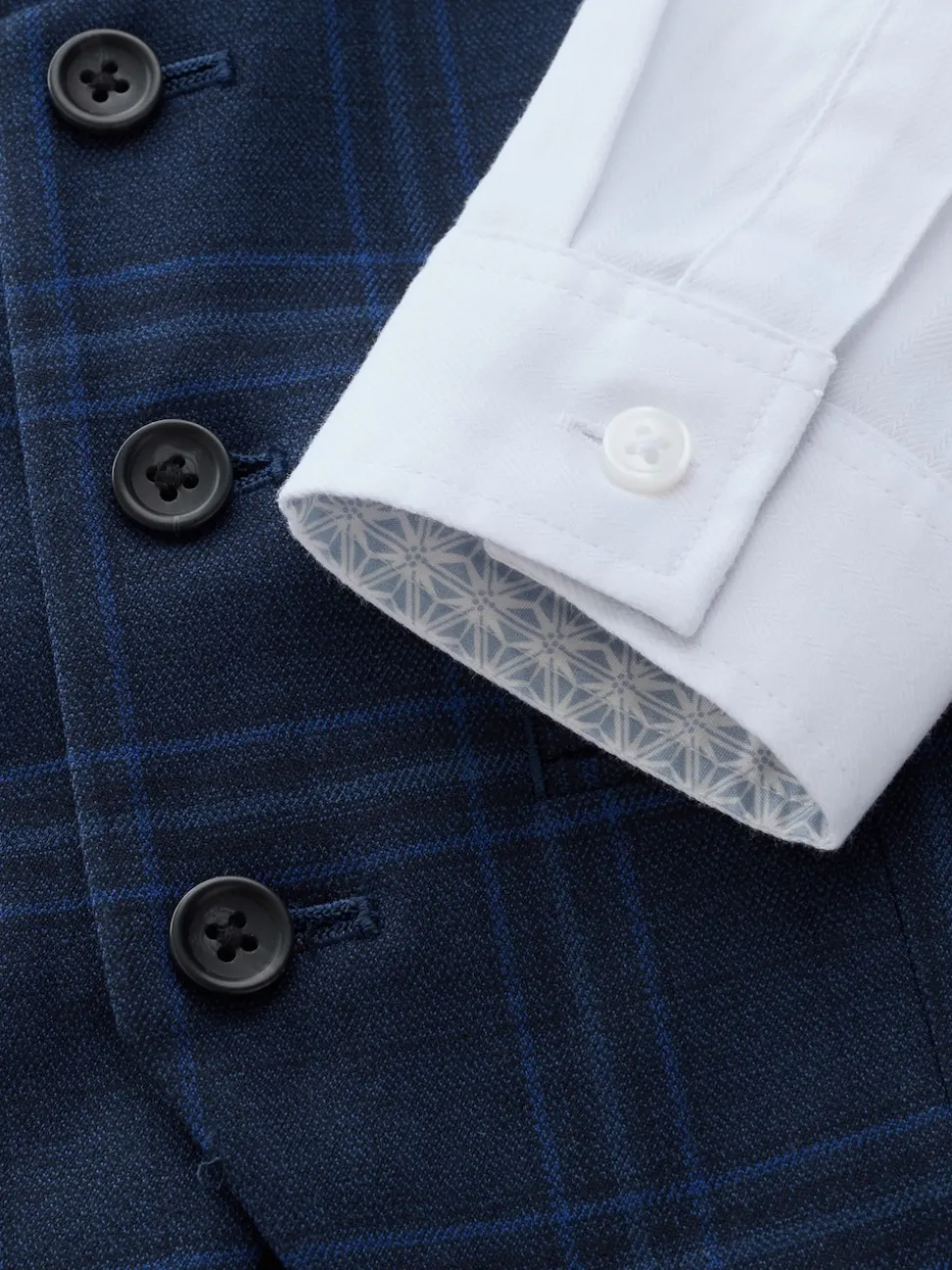 Lavable en machine. Gilet Principal 64% Polyester, 34% Viscose Livaeco™, 2% élasthanne. Doublure 100% polyester recyclé. Dos 100% polyester recyclé. Chemise 60% coton, 40% polyester. Cravate 100% polyester.