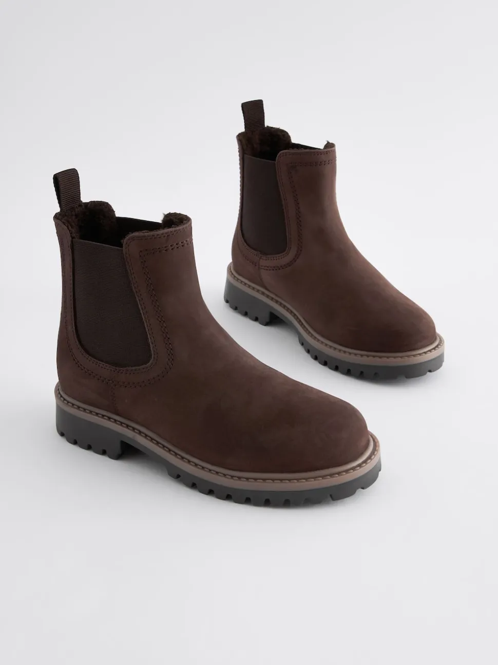 Marron chocolat – Bottes Chelsea en cuir à doublure chaude