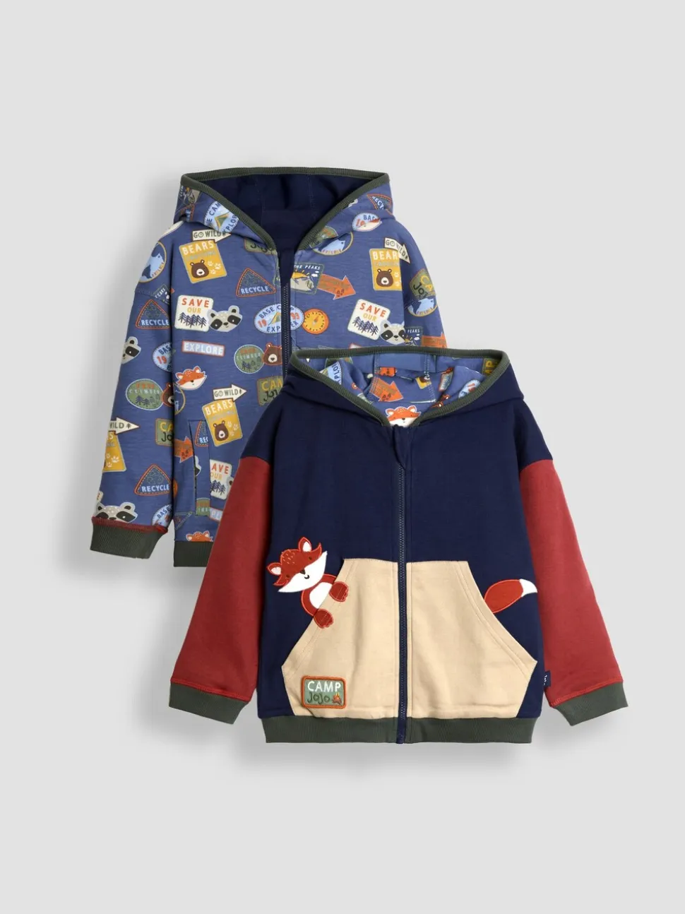Navy Cub Club – Sweat à capuche réversible JoJo Maman Bébé Colour Block appliqué