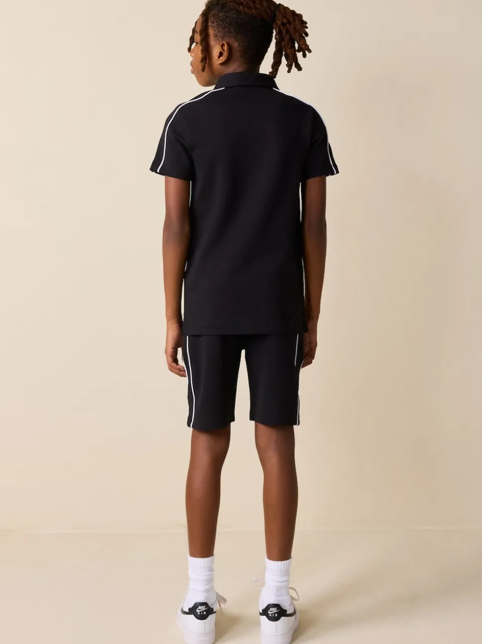 Lavable en machine. Polo et short 80% coton, 20% polyester recyclé.