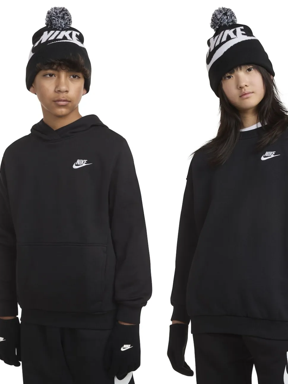 Noir – Nike ensemble bonnet et gants à pompons Swoosh
