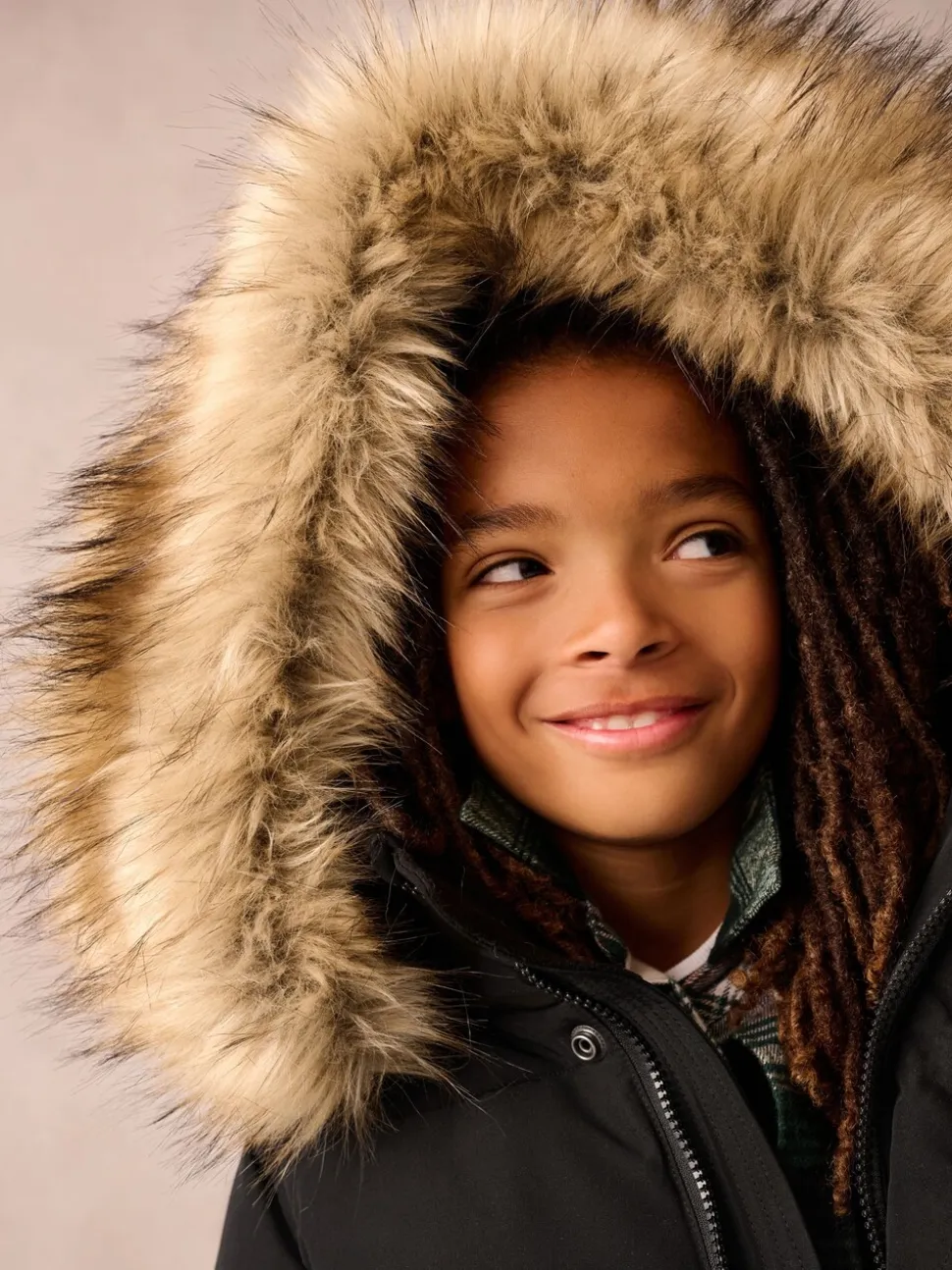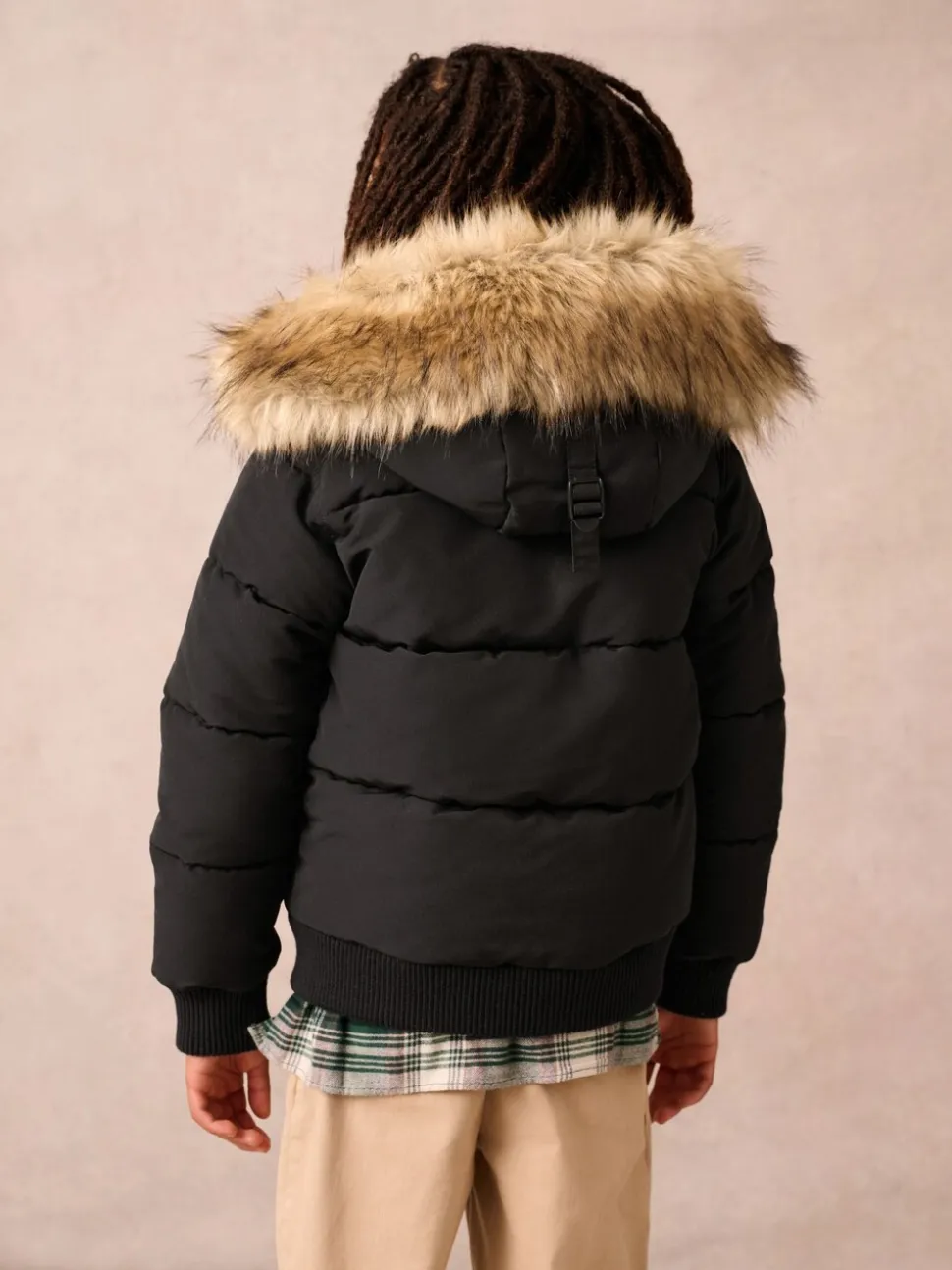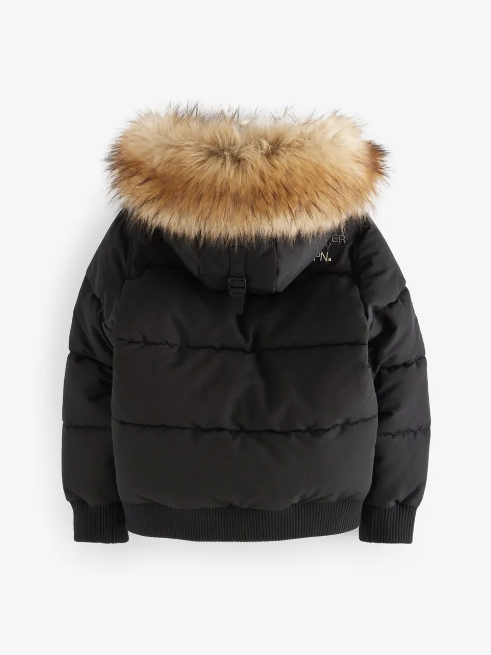 Lavable en machine. Extérieur 100% polyester. Doublure du corps 100% nylon. Doublure de la capuche 100% de polyester. Fourrure artificielle 48% Modacrylique, 43% acrylique, 9% polyester. Côtes 98% polyester, 2% élasthanne. Garnissage 100% polyester.