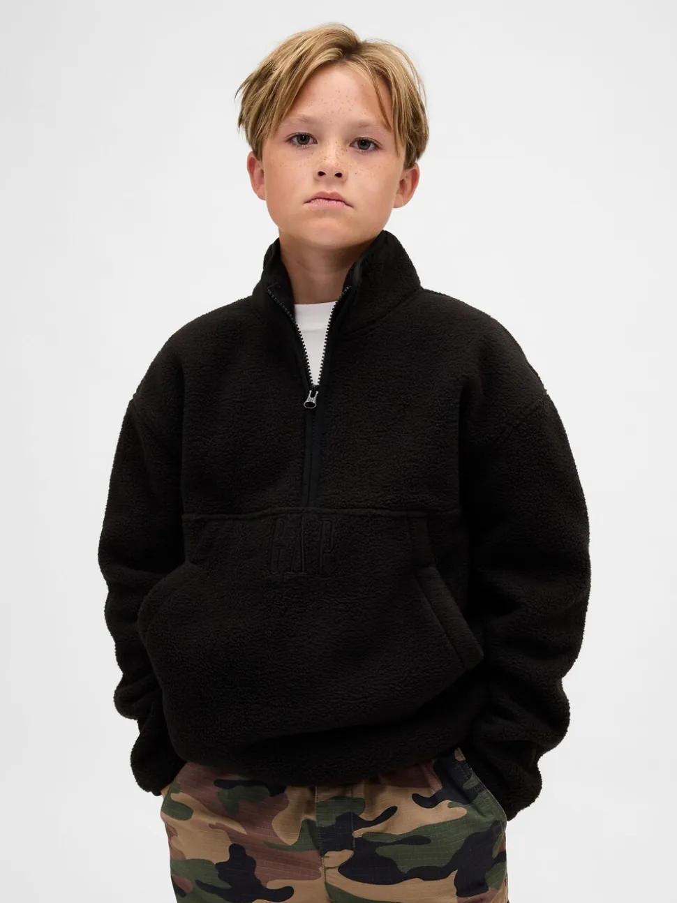Noir – Sweat-shirt à enfiler semi-zippé avec Logo Gap Sherpa (4-13ans) (4-13ans)