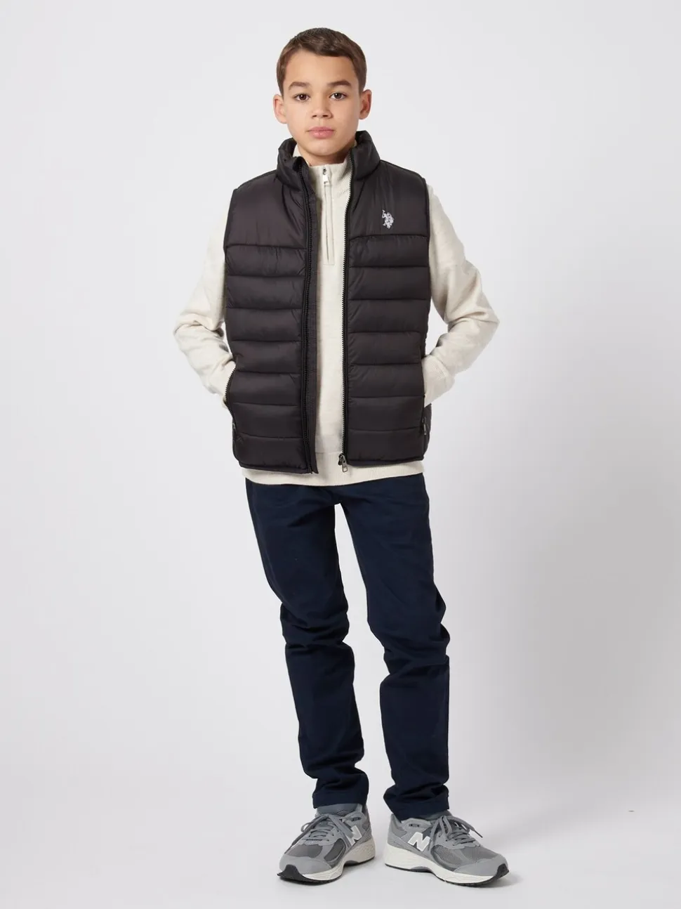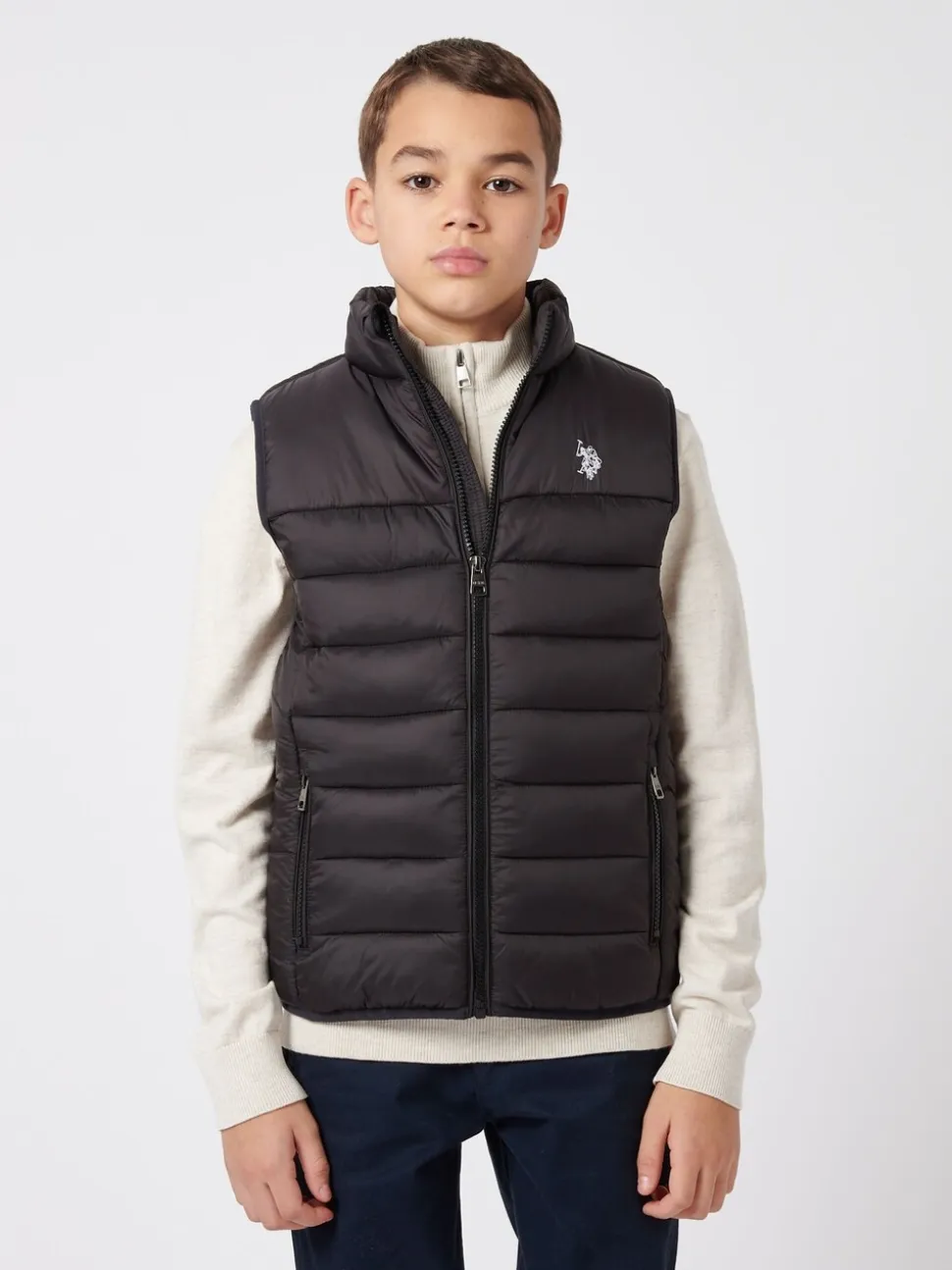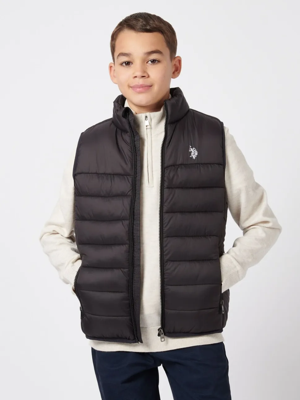 Noir – U.S. Polo Assn. Gilet matelassé à panneaux pour garçons